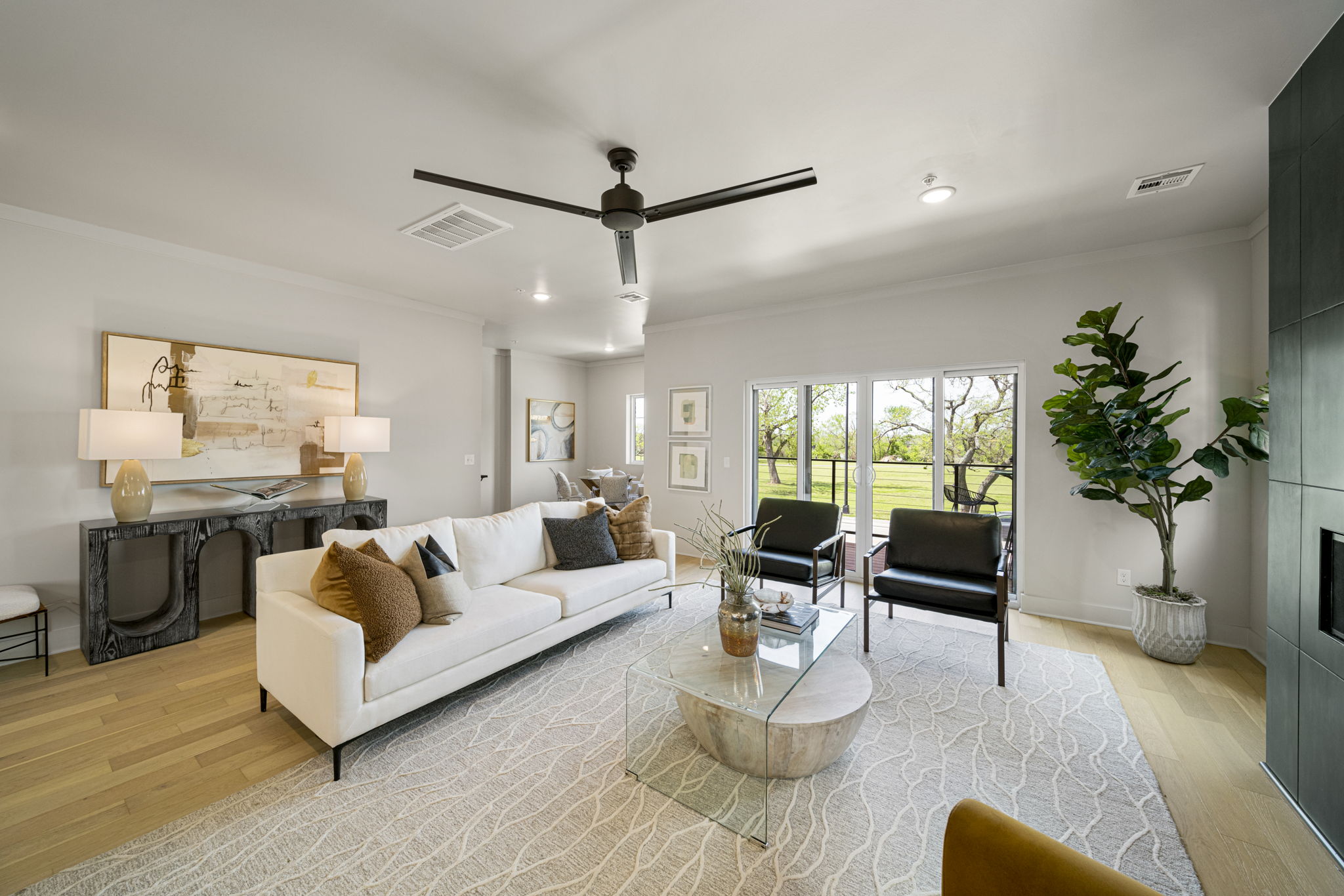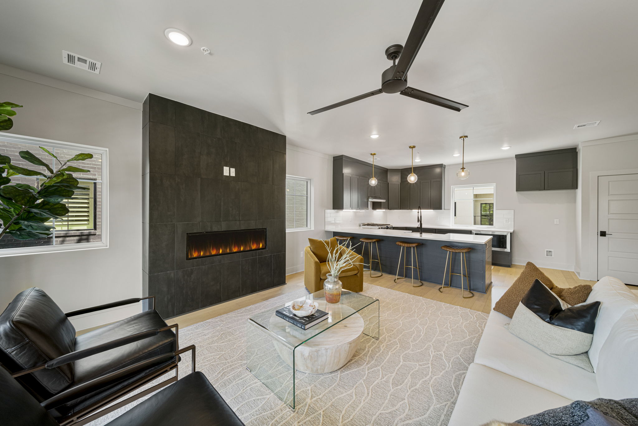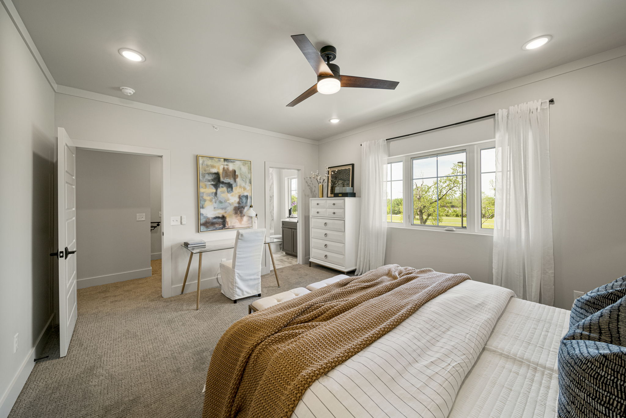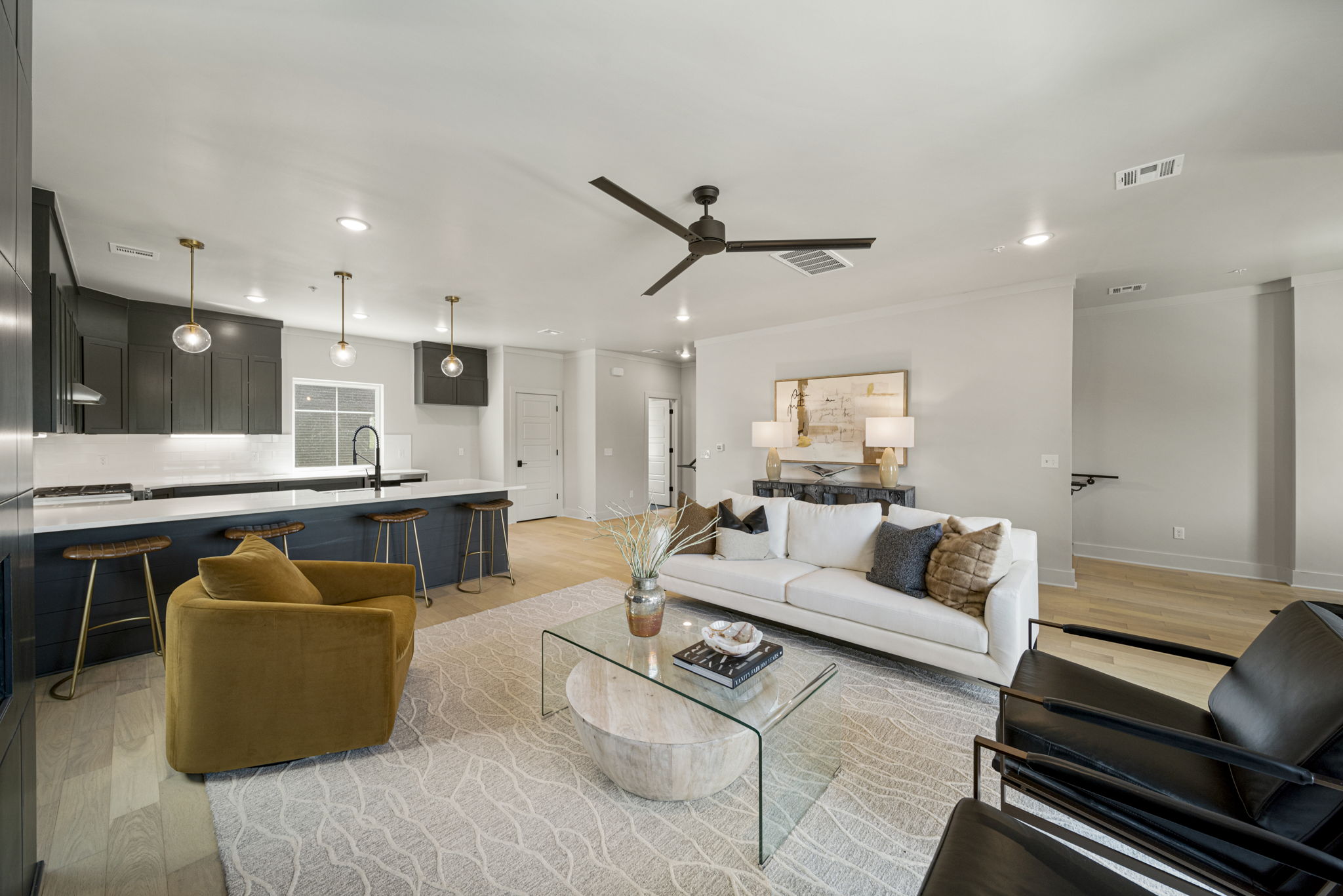 Discover modern elegance in the newly constructed Edgewater Condominiums, a boutique community featuring 18 luxurious units with 5 still available for purchase. The main level offers an open-concept design with a spacious living area, a stunning fireplace, and a chef's kitchen featuring quartz countertops, professional stainless-steel appliances, a prep sink, and island seating. A versatile office or dining nook and a stylish powder bath complete the space. Upstairs, you'll find two private master suites with luxe bathrooms, large walk-in closets, and a conveniently located laundry room. The ground level includes a spacious two-car garage with ample storage. These condos boast tall ceilings, abundant natural light, and exceptional storage throughout. Located directly across from Riverside, Edgewater Condominiums are within walking distance to Brookside, The Gathering Place, and scenic trails, offering a lifestyle perfect for work, recreation, and entertainment. Whether you're seeking a full-time residence or a lock-and-leave option for travel, these condos are designed to meet your needs. Don't miss this rare opportunity!